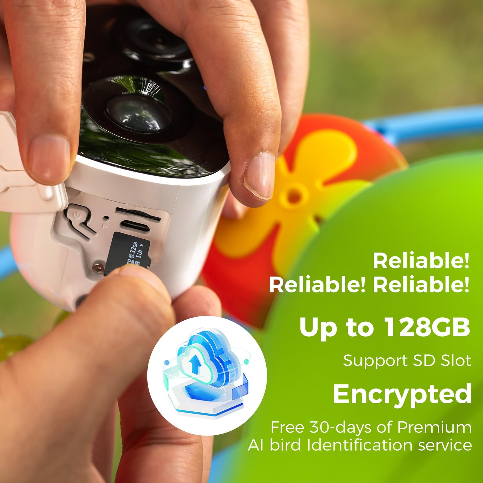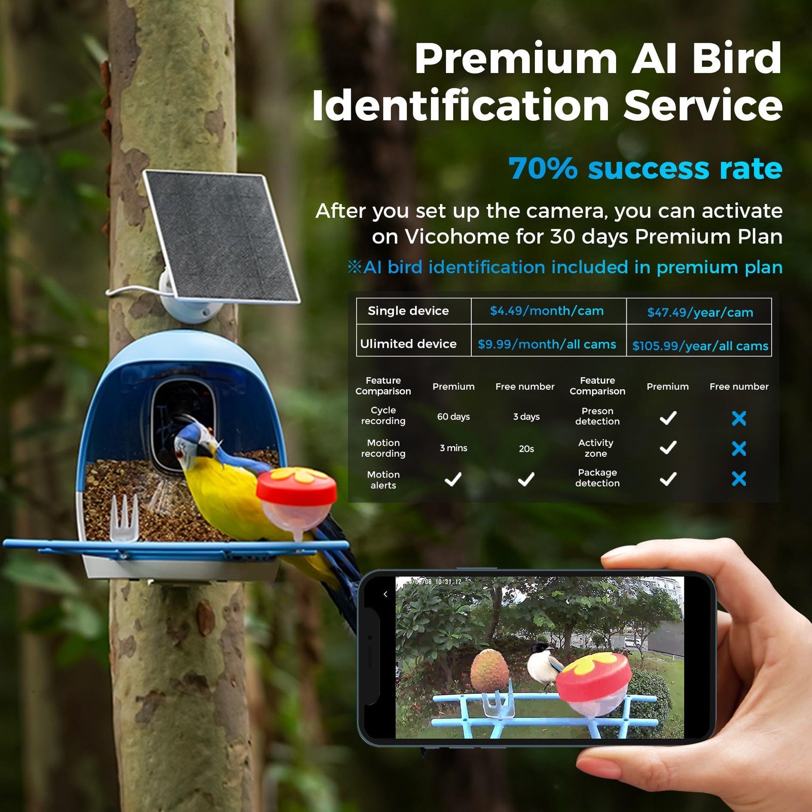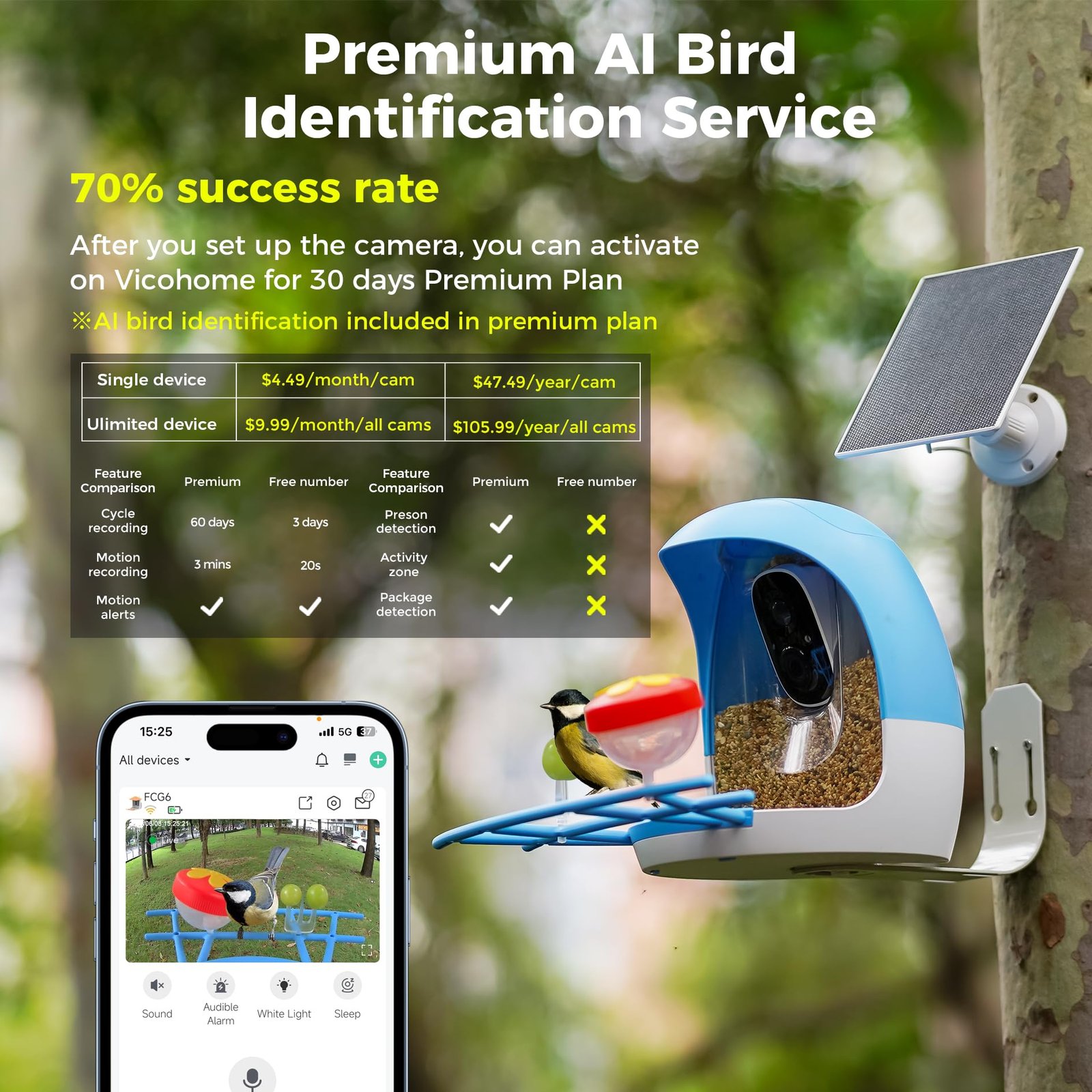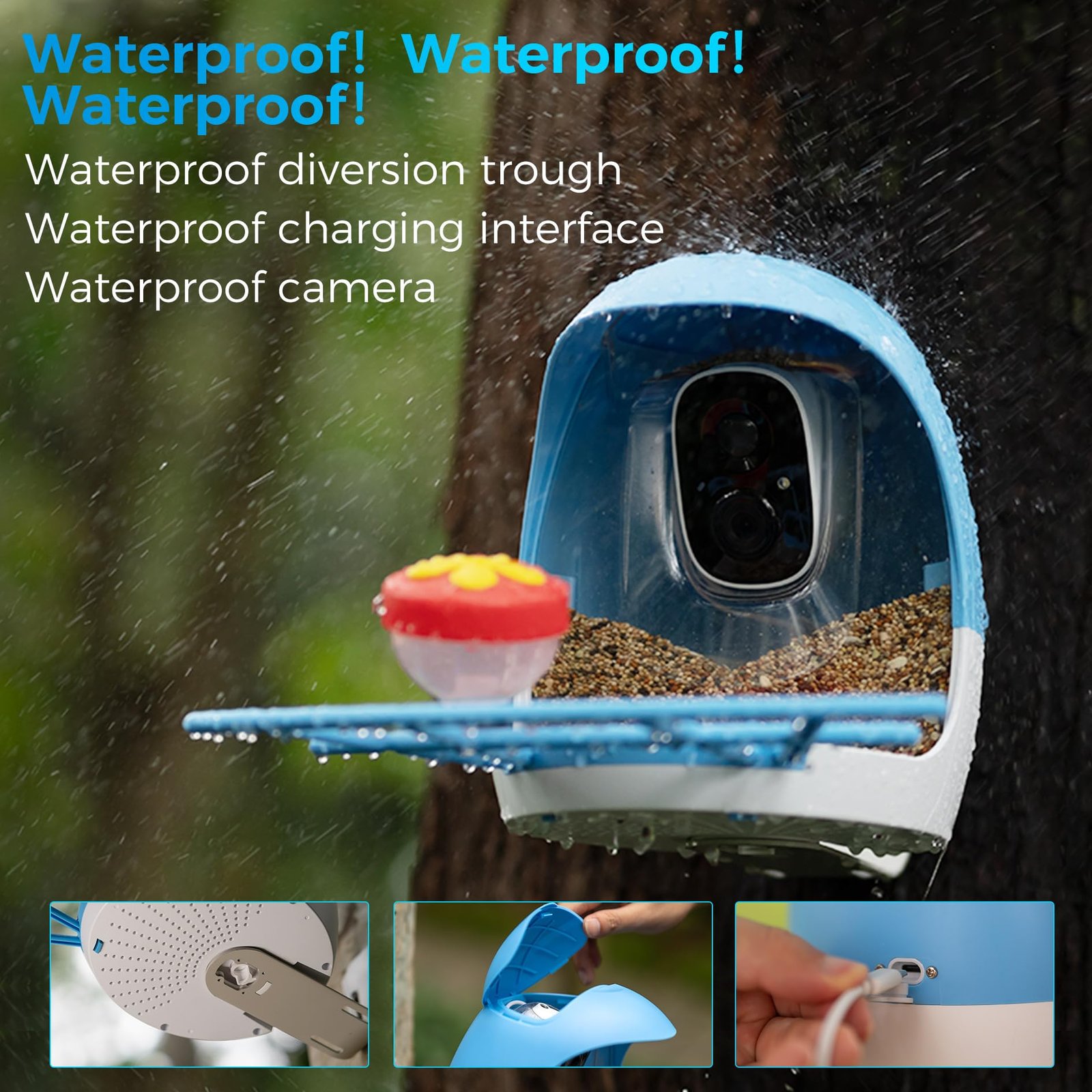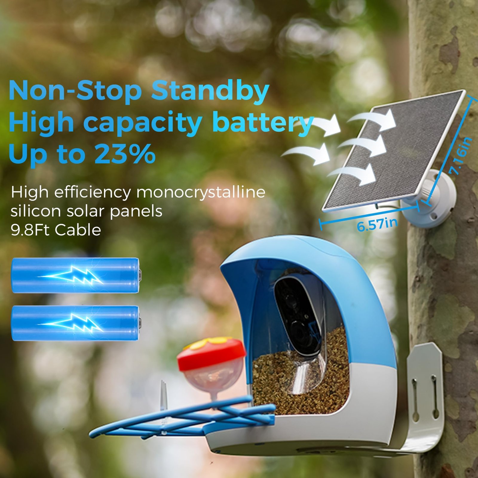 Aomeisi A6 AI Feeder with 2K Solar Camera Squirrel Feeder Identify Hummingbird attractant Motion Detection Two Way Audio SD Slot Gift for Bird Photography Bird Lover