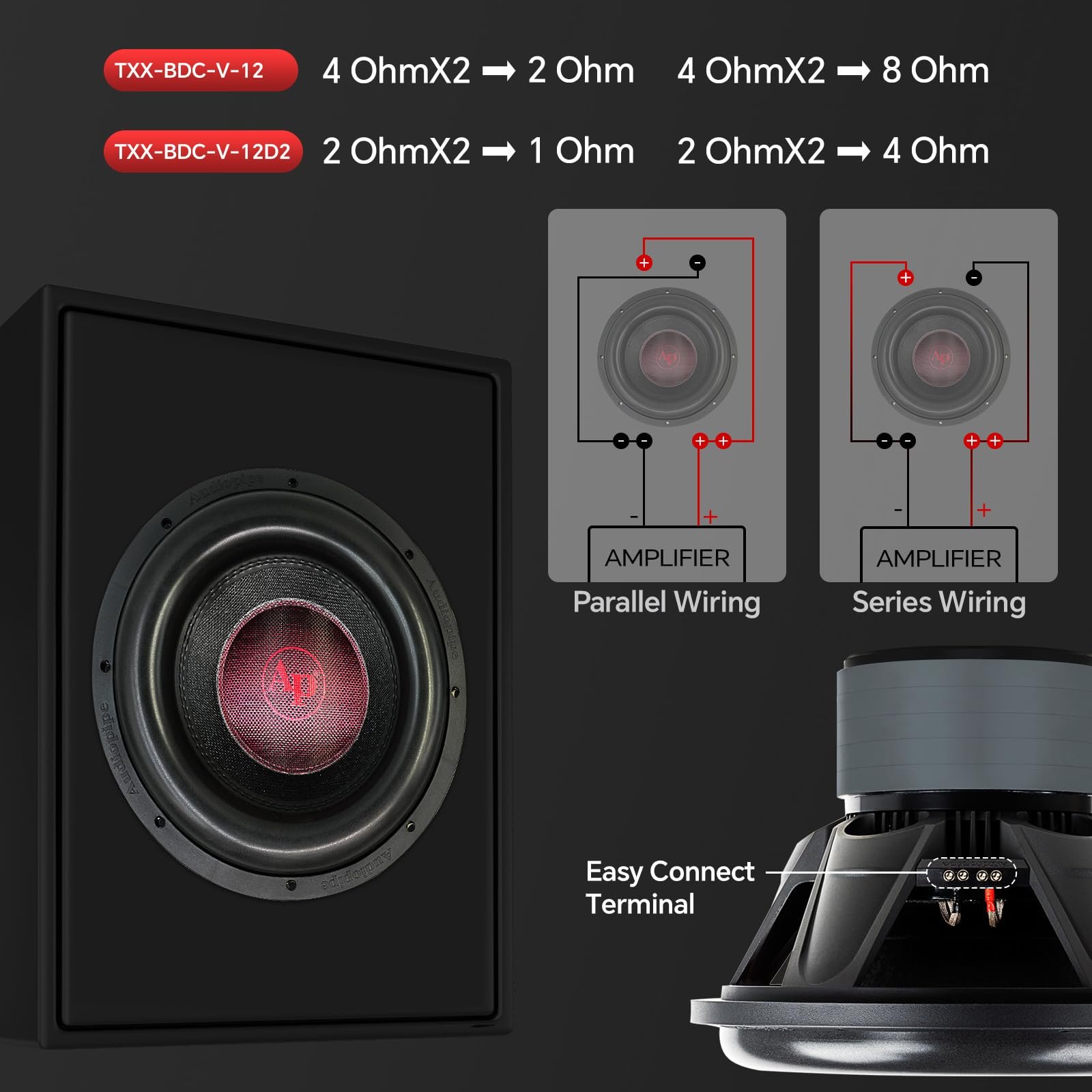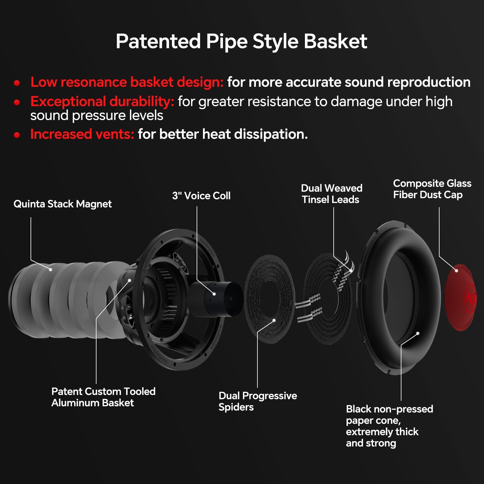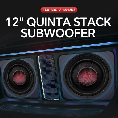 Audiopipe 12″ Quinta Stack Composite Cone Subwoofer (TXX-BDC-V-12), Superior Performance, 2400W, 5 Magnets, BASV Voice Coil, Aluminum Basket, Weaved Tinsel Leads, Multi-Connect Terminals, 2 * 4 Ohms