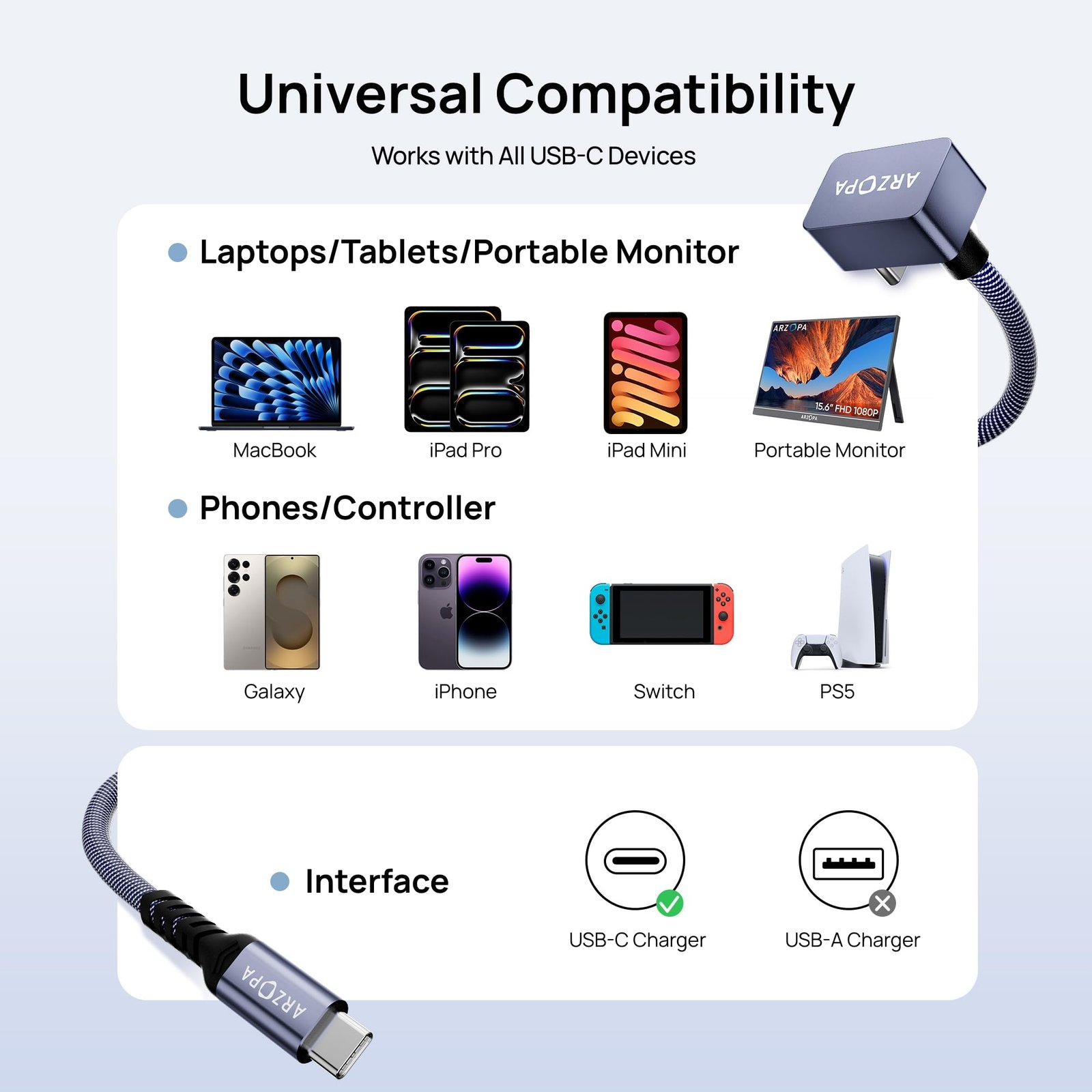 100W Power Delivery Fast Charging:This USB-C cable supports 100W PD charging, capable of charging an iPhone 16/15 Pro to 50% in approximately 30 minutes. It provides efficient charging for MacBook Pro/Air, iPad Pro, and other USB-C compatible devices.
