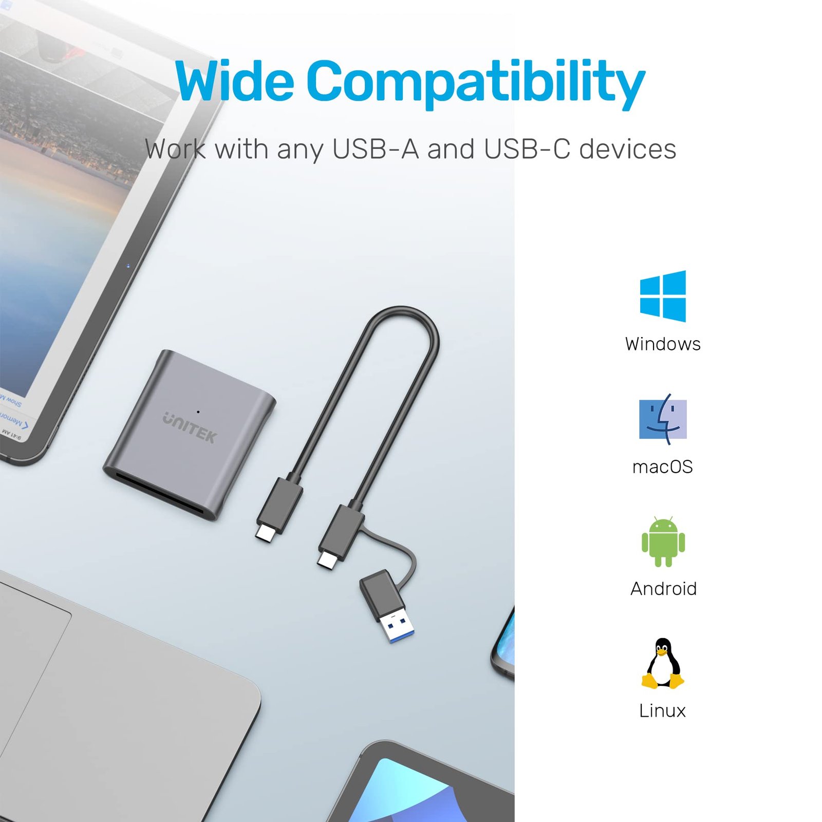 【USB 3.0 USB-C CFast Reader】This CFast Reader comes with one USB A to USB C cable and one USB C to USB C cable, designed to allow one device to compatible with all variety MacBook Pro, Mac Air, computer, PC, laptop and other type-c devices simultaneously.