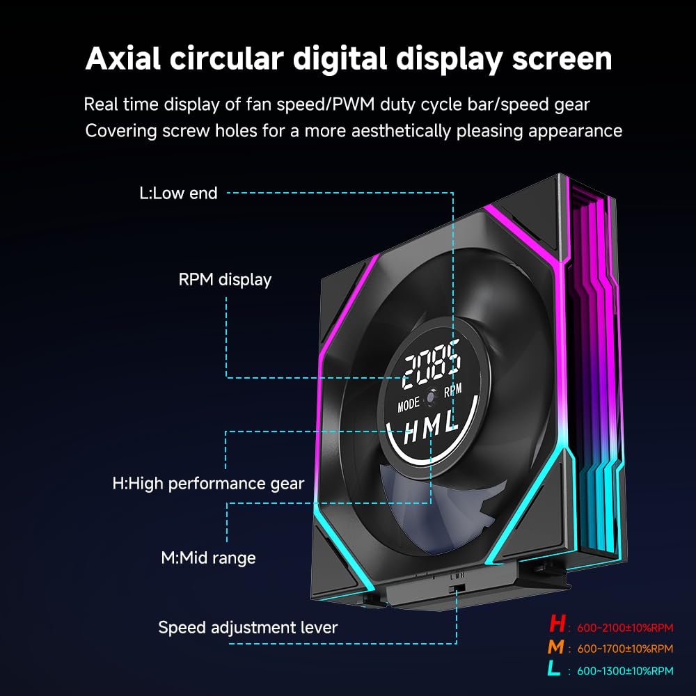 Jungle Leopard Interstellar V4 120mm PC Case Fan|Computer Cooling ARGB CPU Cooler Daisy Chain Fan|Three-Mode Digital Display|Infinity Mirror Design|600-2100 PWM Control|Triple Pack (Black Reverse)