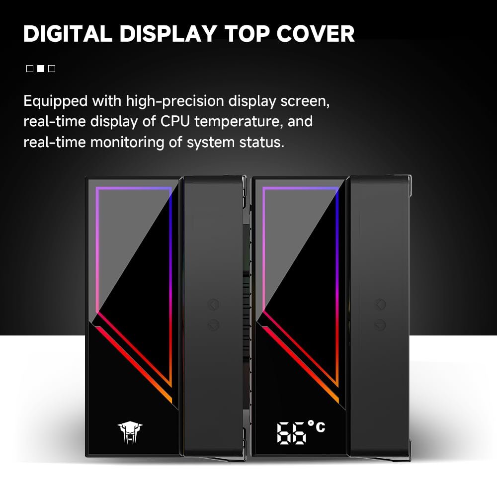 Jungle Leopard KF620-DGT CPU Air Cooler, Dual ARGB PWM Fans, 6 Heat Pipes, Digital Display Top Cover – High-Performance Cooling for AMD:AM4 AM5/Intel LGA 1700/115X/1200/1366/1851 PC Cooler(Black