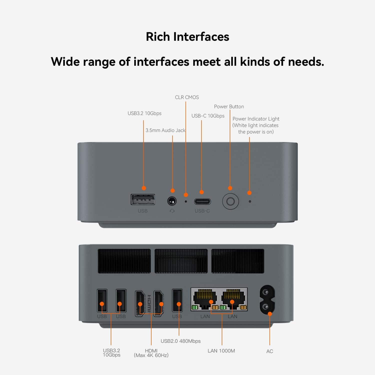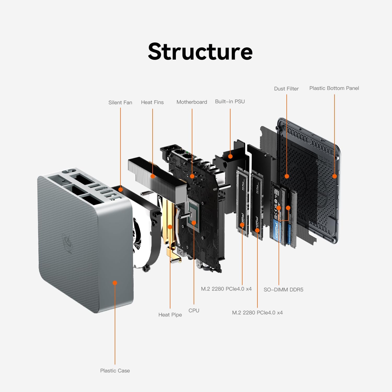🎈【High-capacity Storage & Cooling】The Beelink EQR6 6800H built-in 32GB LPDDR5 (The memory is welded to the motherboard and cannot be upgraded or expanded), and 1TB M.2 2280 NVMe PCIE4.0x4 SSD(comes with Dual M.2 2280 PCle4.0x4 SSD slots, Up to 4TB), more storage space will make Mini PC run more smoothly. Heat pipe, silent fan and heat fins quickly push the heat out of the mini pc, avoiding CPU overheating and throttling, offering efficient cooling for the SSD and RAM.