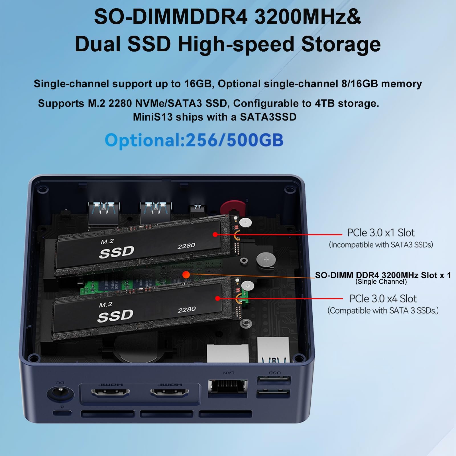 Beelink Mini S13 Mini PC,13th Intel Twin Lake-N150 (up to 3.6GHz, Upgraded N100), 16GB DDR4 500GB M.2 SSD, Mini Desktop Computer Support 4K Dual Display/USB 3.2/WiFi 6/BT 5.2 for HTPC/Office/Business