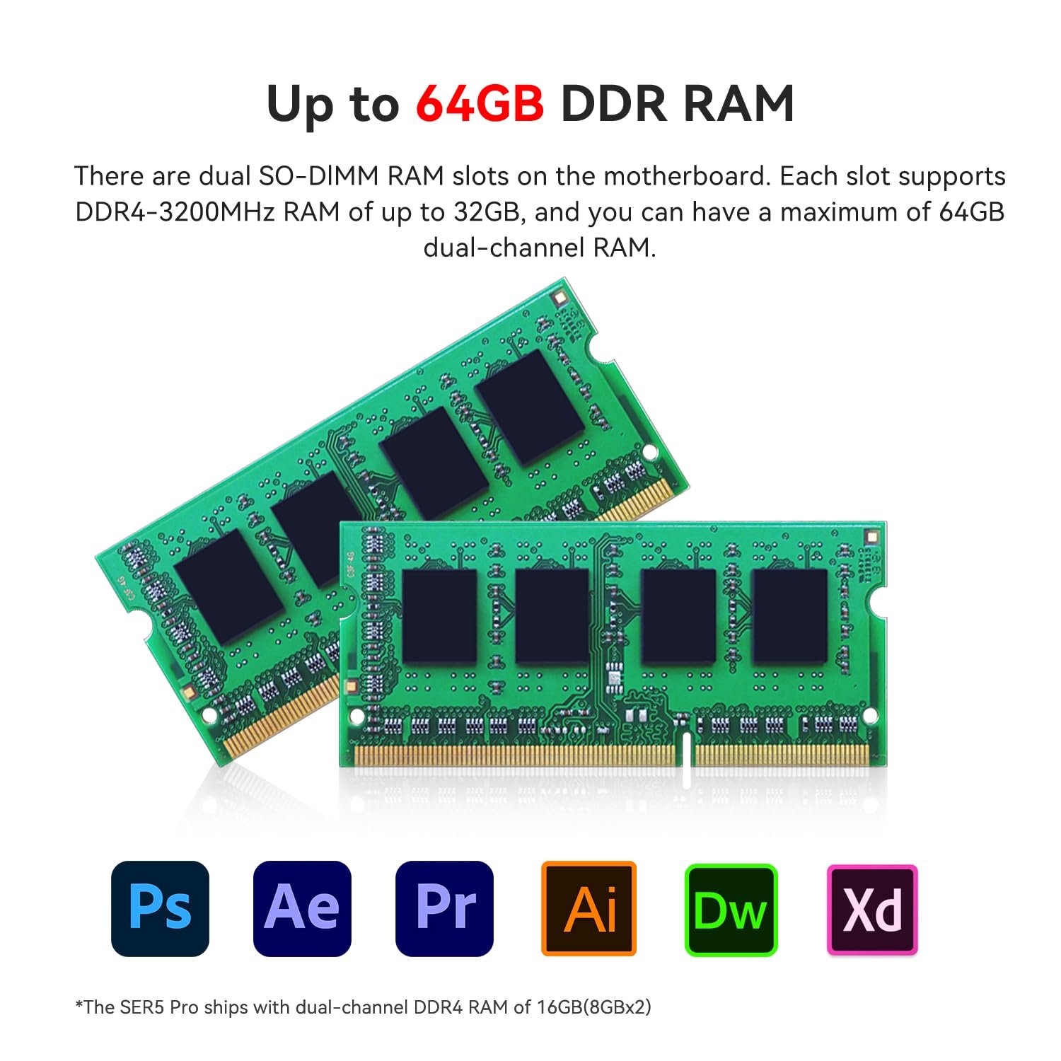 ✔️High-capacity Storage: The Mini Computer built-in 32GB SO-DIMM DDR4 3200MHz, 500GB M.2 2280 NVMe SSD(Read 3000MB/s). The small computers Support DIY expandable storage, DDR4 up to 64GB(2*32G) expandable memory, NVMe M.2 SSD up to 2TB, and support 500GB~2TB 2.5-inch SATA HDD or SSD, more storage space will make Mini PC run more smoothly.