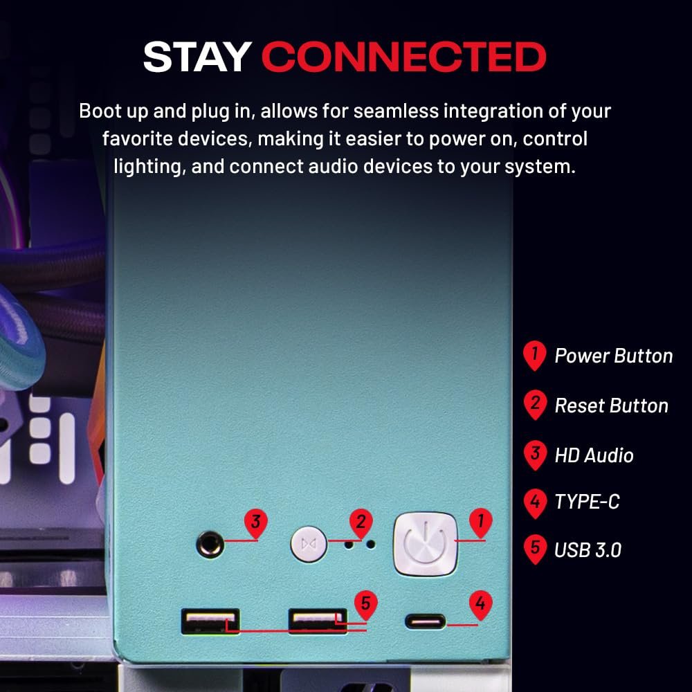 AMD Ryzen 7 7800X3D 4.2GHz (5.0GHz Turbo Boost) CPU Processor | 1TB Gen4 NVMe M.2 SSD – Up to 30x Faster Than Traditional HDD | 360mm AIO Liquid CPU Cooler with ARGB Fans, say goodbye to outdated and inefficient air coolers.