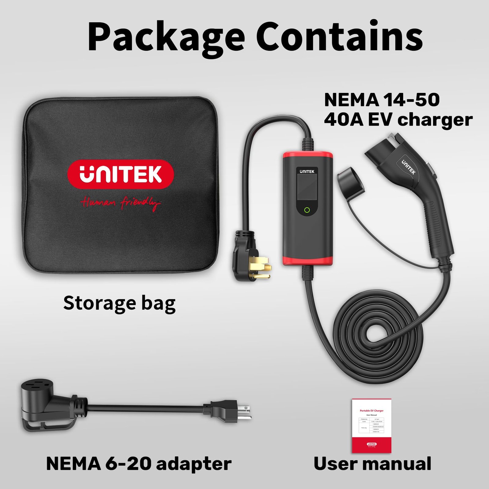 Unitek Level 2 EV Charger Electric Vehicle Charging Station 25FT Charging Cord Portable EV Charger 40A 110V-240V for J1772 Evs NEMA 4-15 NEMA 6-20 Plug Current Adjustable Reservation Charging UL