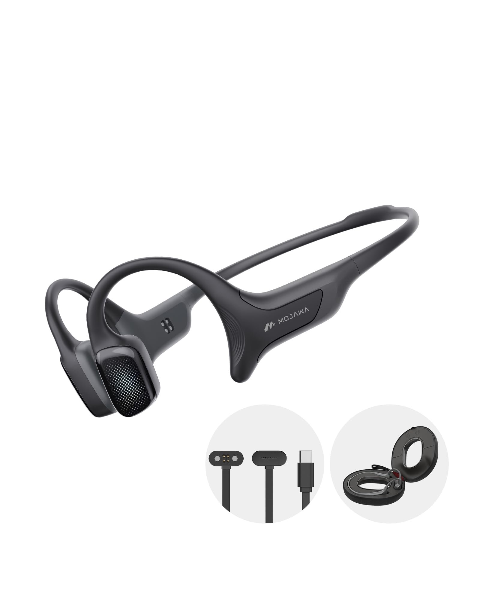 Mojawa HaptiFit Terra Open Ear Bluetooth Bone Conduction Headphones, Headphone Storage Bag and Extra Charging Cable, Waterproof Wireless Earphones with Mic and 32GB MP3, for Workouts, Swimming and Run