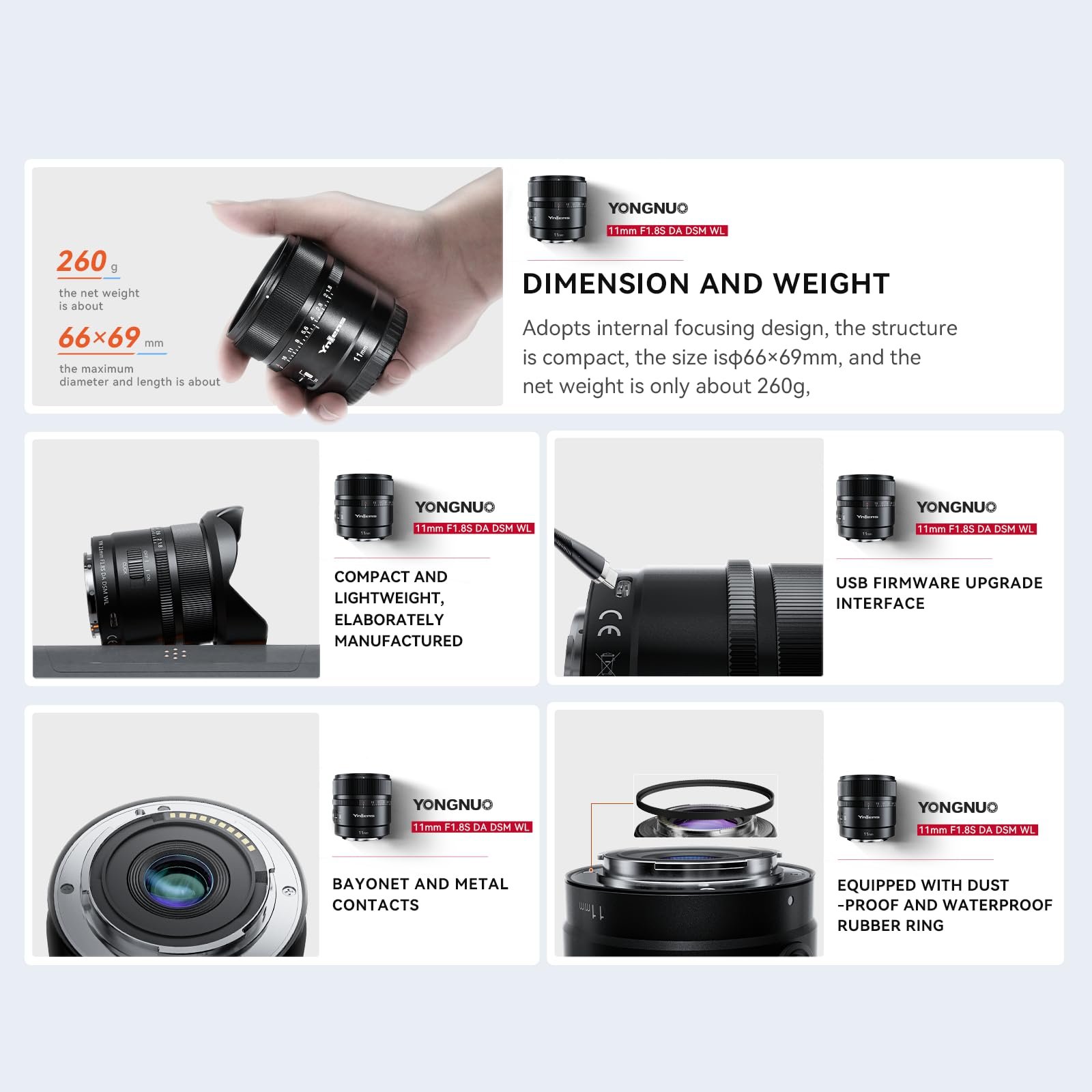 YONGNUO YN11MM F1.8S Lens w/Remote Controller, 11mm F1.8 Large Aperture Fixed Prime Lens for Sony, Auto Focus APS-C Frame, Ultra Wide Angle Lens for E Mount Mirrorless Cameras