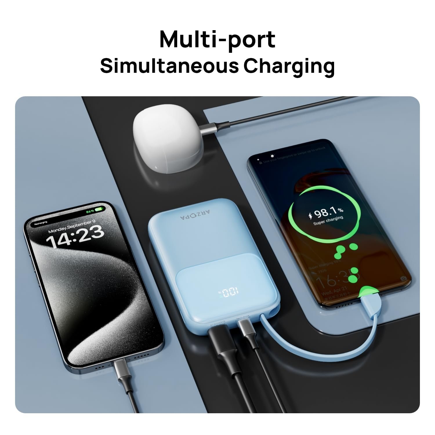 High-Speed 22.5W Charging: Experience rapid charging with our power bank’s 22.5W output. It quickly charges smartphones, tablets, and other USB – powered gadgets, minimizing charging time and maximizing usage