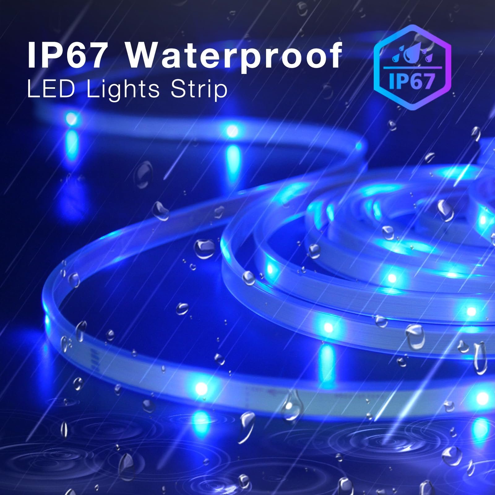IP67 Waterproof: Make with waterproof tube case, 2 Rolls of 50 Feet Outdoor LED strip lights and control box are IP67 waterproof. This LED Lights can be installed outdoor and withstand splashes or rainfall
