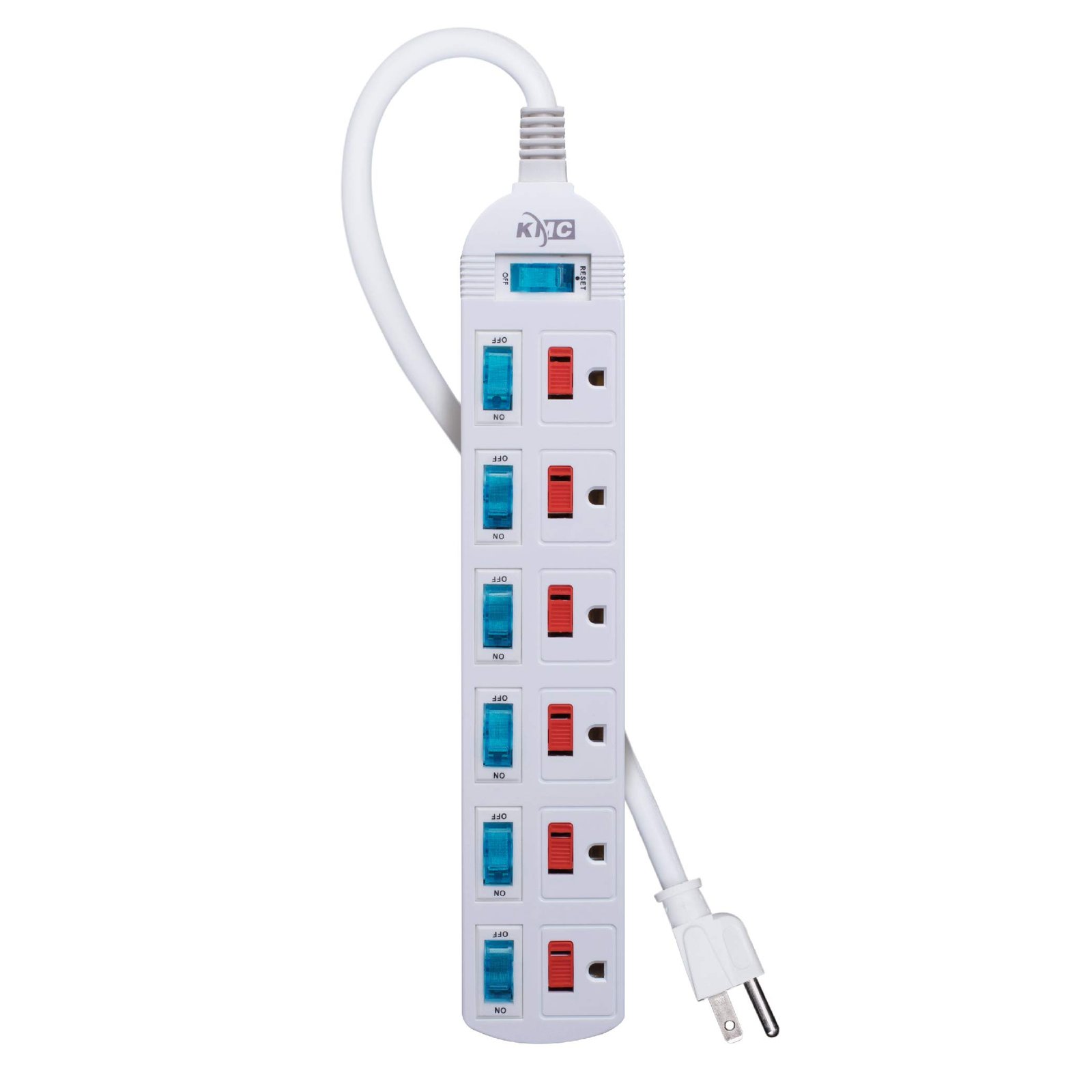 KMC 6 Outlet Power Strip with Multi-Outlet Independent Switches, Overload Protector,4-Foot Cord