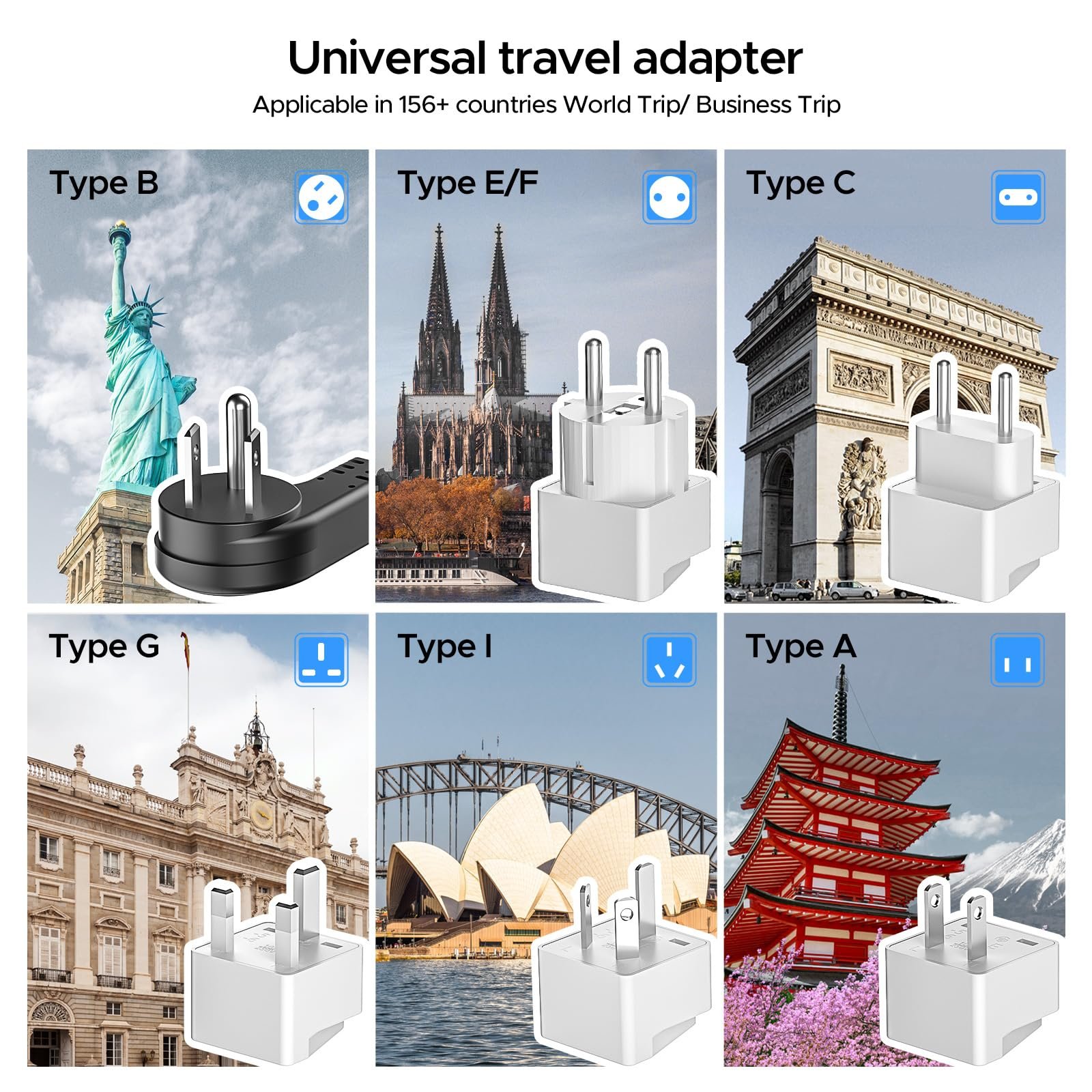 Worldwide Use with 5 Adapters: The 220V to 110V power converter adapter combo come with a 4 feet detachable Type B AC power cord and 5 international adapter ( Type C, A, I, E/F, G); it’s a great companion for your travels in the United Kingdom, Europe, Italy, Australia, Japan, France, Germany, Spain, Greece, South Korea, Netherlands, Norway, Poland, Portugal, China, Dubai, Fiji, Hong Kong, Ireland, Argentina, New Zealand, Canada and more than 156 other countries in the world, perfect for charging your US electronic devices while traveling abroad.