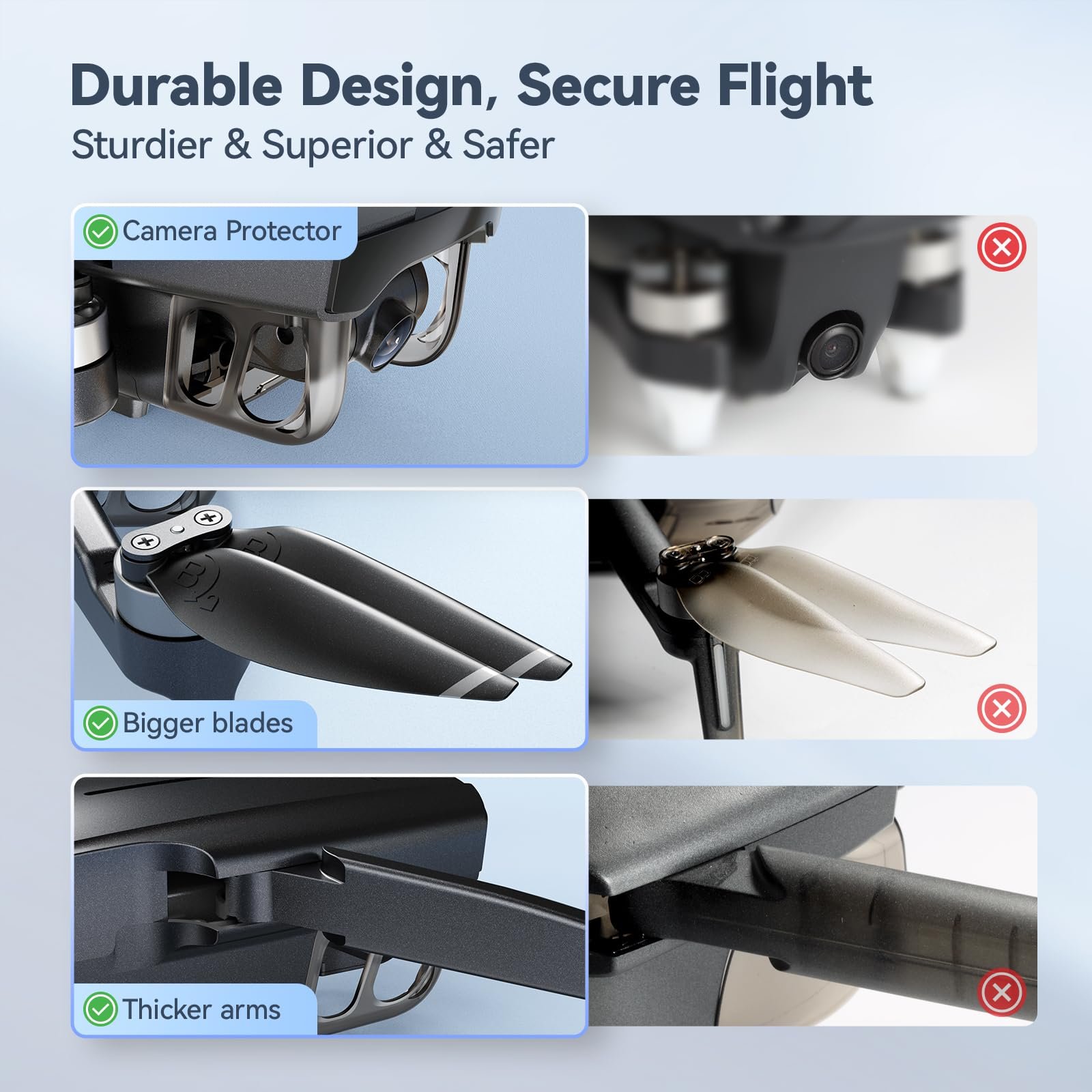 【4K UHD CAMERA】Capture stunning 4096x3072p photos and smooth 2.7K/25fps videos. Enjoy real-time 2K video transmission up to 1,640ft away. Get the perfect shot with the 120° wide-angle field of view and adjustable 90° lens.