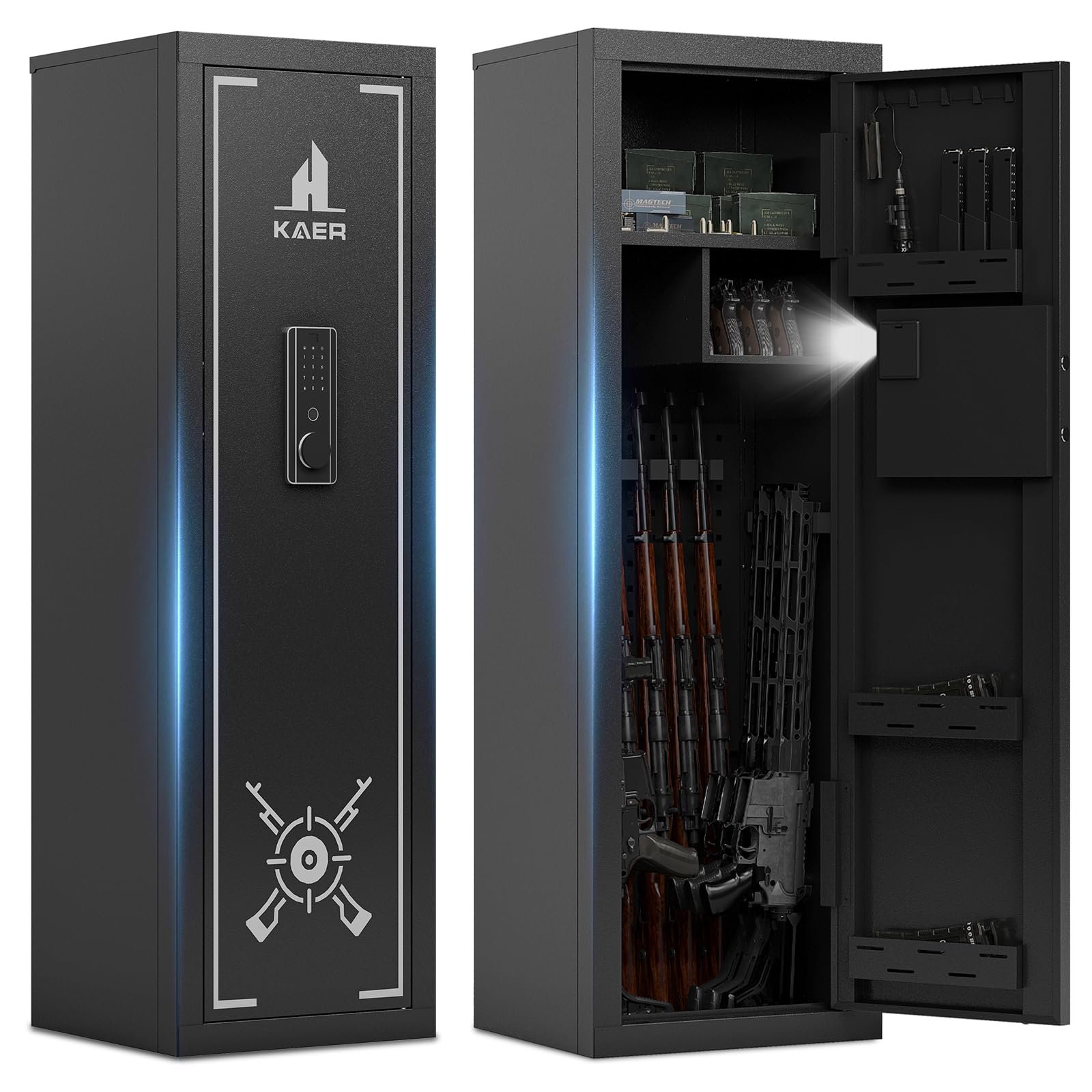 KAER 12-14 Gun Safe for Home Rifle and Pistols Biometric Gun Safes & Cabinets Clearance Gun Cabinet for Rifles and Shotguns,Gun Safe for Handgun with Digital Keypad Adjustable Shelves Unassembled