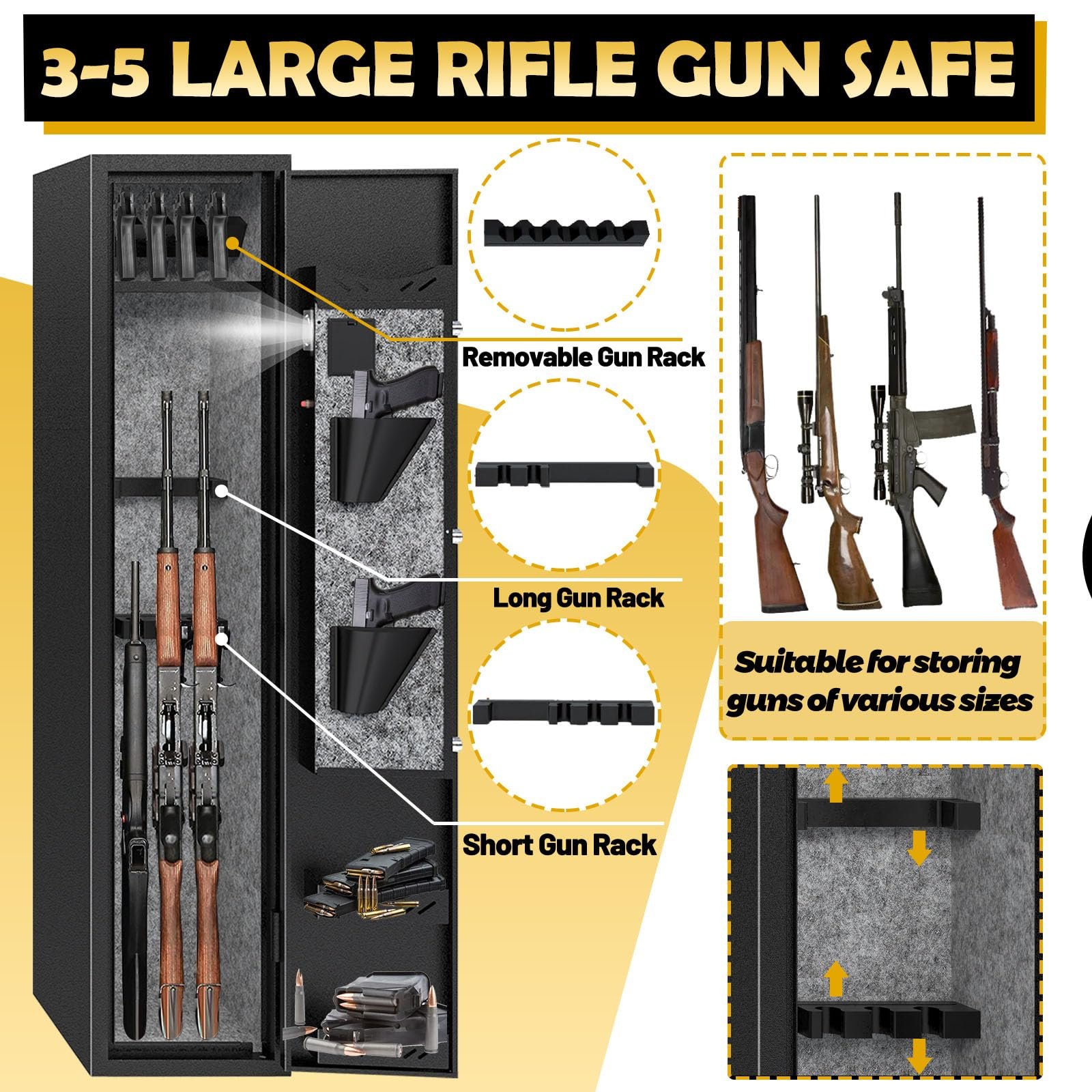 KAER 4-5 Gun Safes,Gun Safe for Rifles and Pistols,Shotgun Rifle Safe,Gun Safes for Rifle and Shotguns,Long Gun Cabinets with Fingerprint/Digital Keypad/Removable Shelf for Rifles Safes