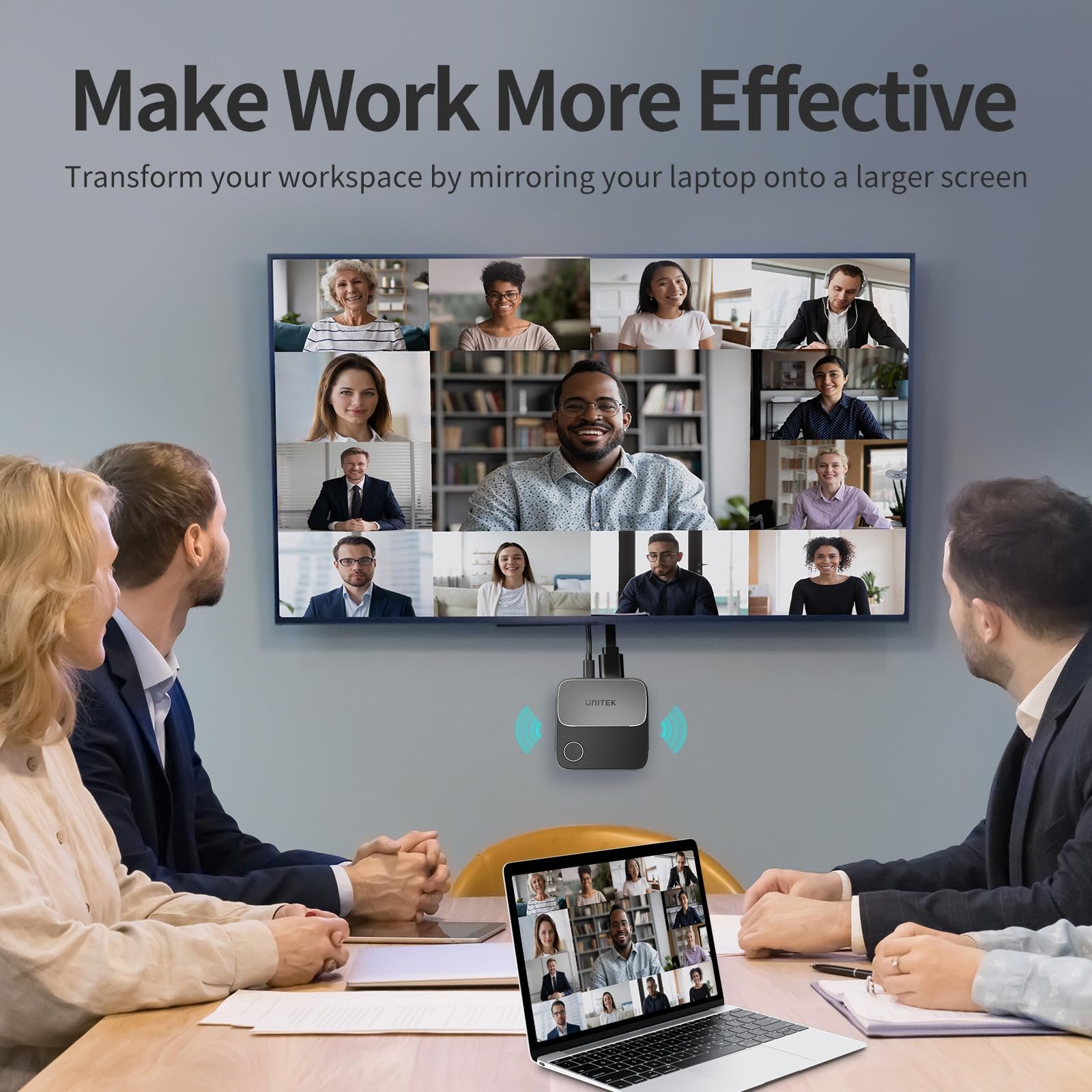 4K@60Hz Ultra Clear Experience: UNITEK 4K Wireless HDMI Adapter supports 4K decoding, delivering stunning 4K@60Hz high-definition output, and also combines with 5G + 2.4G WiFi bands. Ensures the most real original color and smoothest transmission. Perfect for home theater, live sport match, live meeting and online teaching.