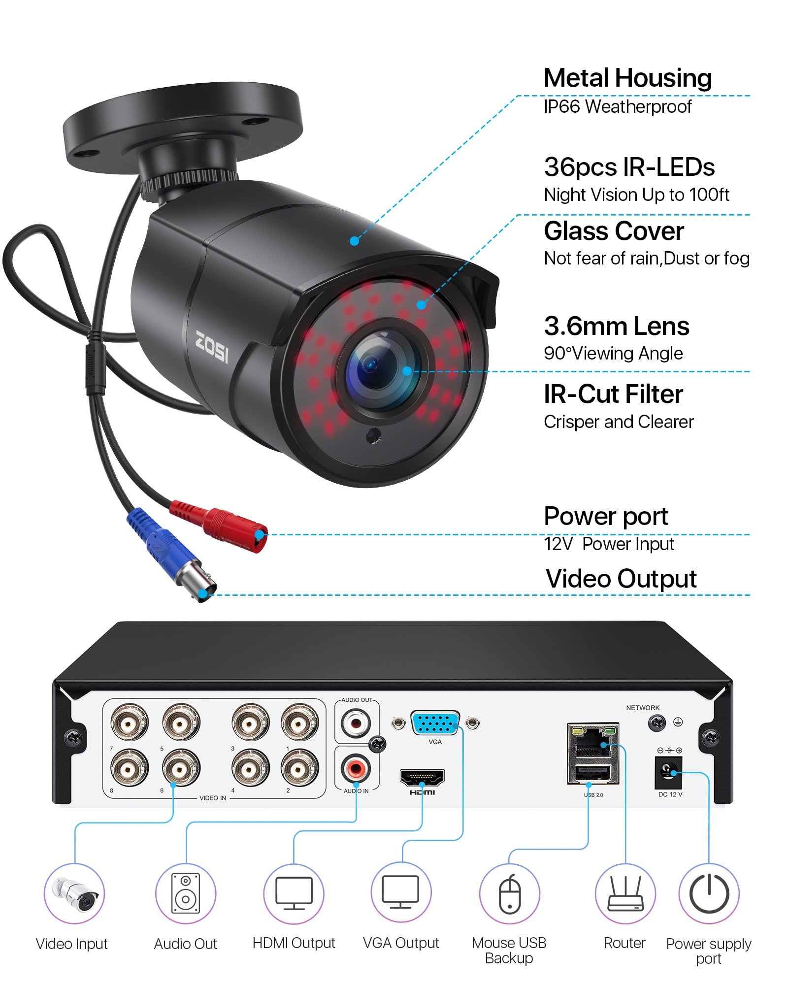 【Compatibility】 This is HD-TVI Security Camera,It only Compatible with HD-TVI Analog DVR Systems,if you want Audio Recording,please make sure you DVRs support Audio input.But It work well with ZOSI DVR (Model:ZR08VN00,ZR08VN10, ZR08VN20)