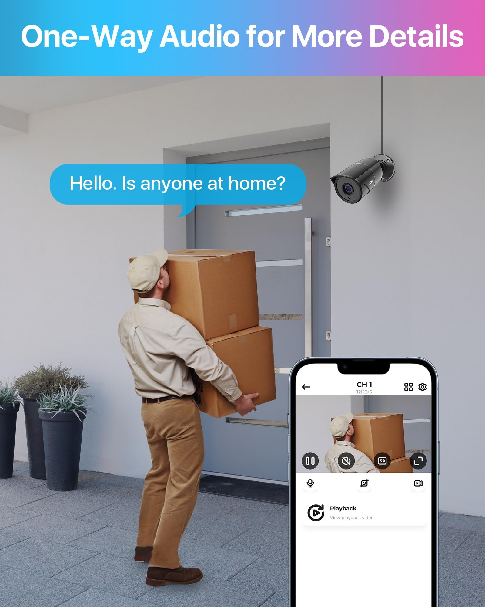 【2.0MP 1080P HD-TVI Security Camera】 This is 1080P HD- TVI Bullet Camera. It compatible with 720P,1080P,5MP,4K HD-TVI analog DVRs. High performance lens captures everything in great detail and presents true-to-life color on screen