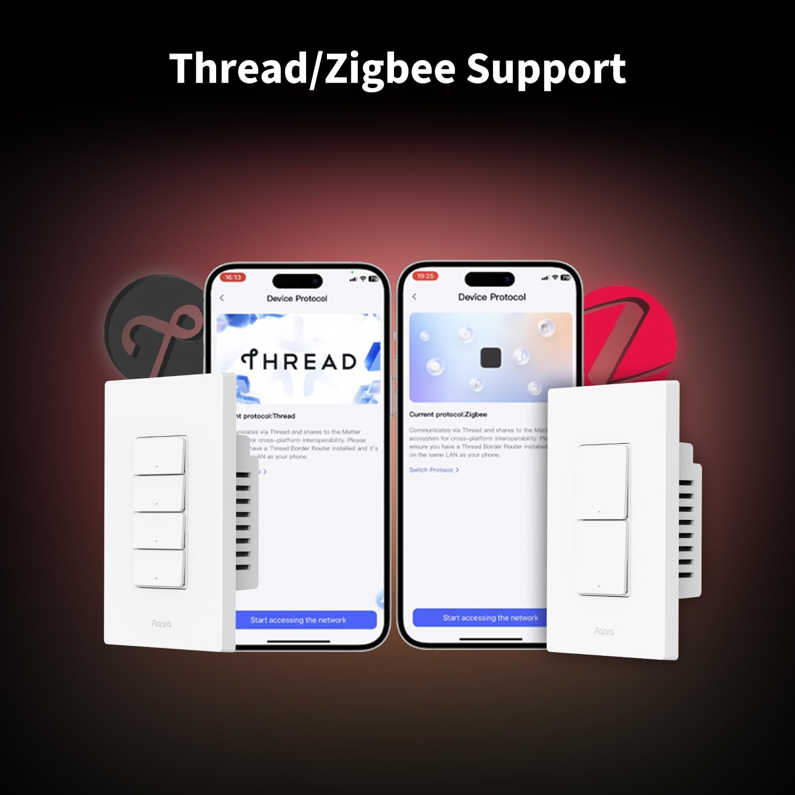 Decoupled Switch Mode: The switch includes 1 electrical switch (also functions as a wireless switch), and 1 pure wireless switch, hence 2 wireless switches in total, enabling sophisticated and technically impressive automations when paired with other Aqara products. For the top button, you can disable its physical control of the relay, allowing it to function like the decoupled buttons below for triggering scenes or automations