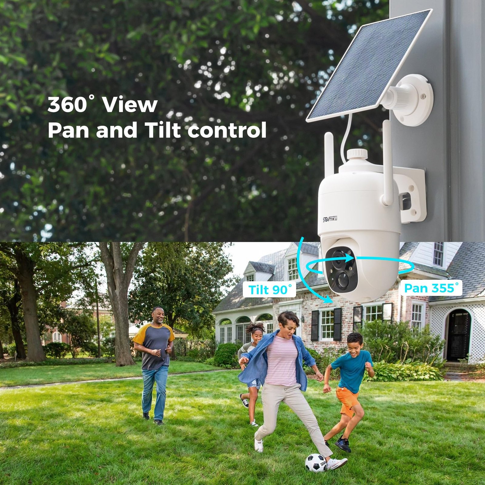 SOVMIKU 2CQ1 AI 2K Solar Security Camera Wireless Outdoor, Battery Powered,Two Way Audio,Motion Detection, 360° View,Easy to Setup,Color Night Vision,Audible Flashlight Siren,180 Days Exchange Policy