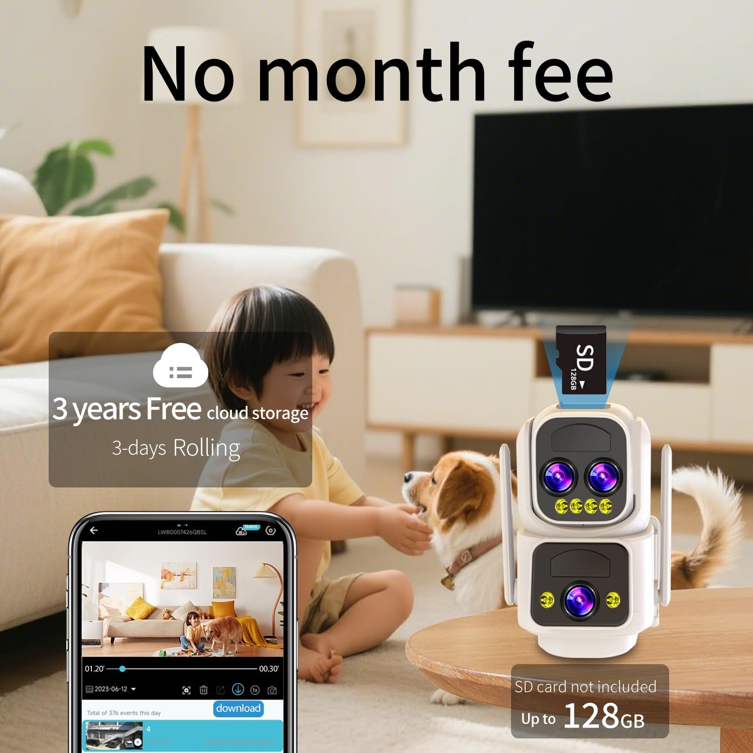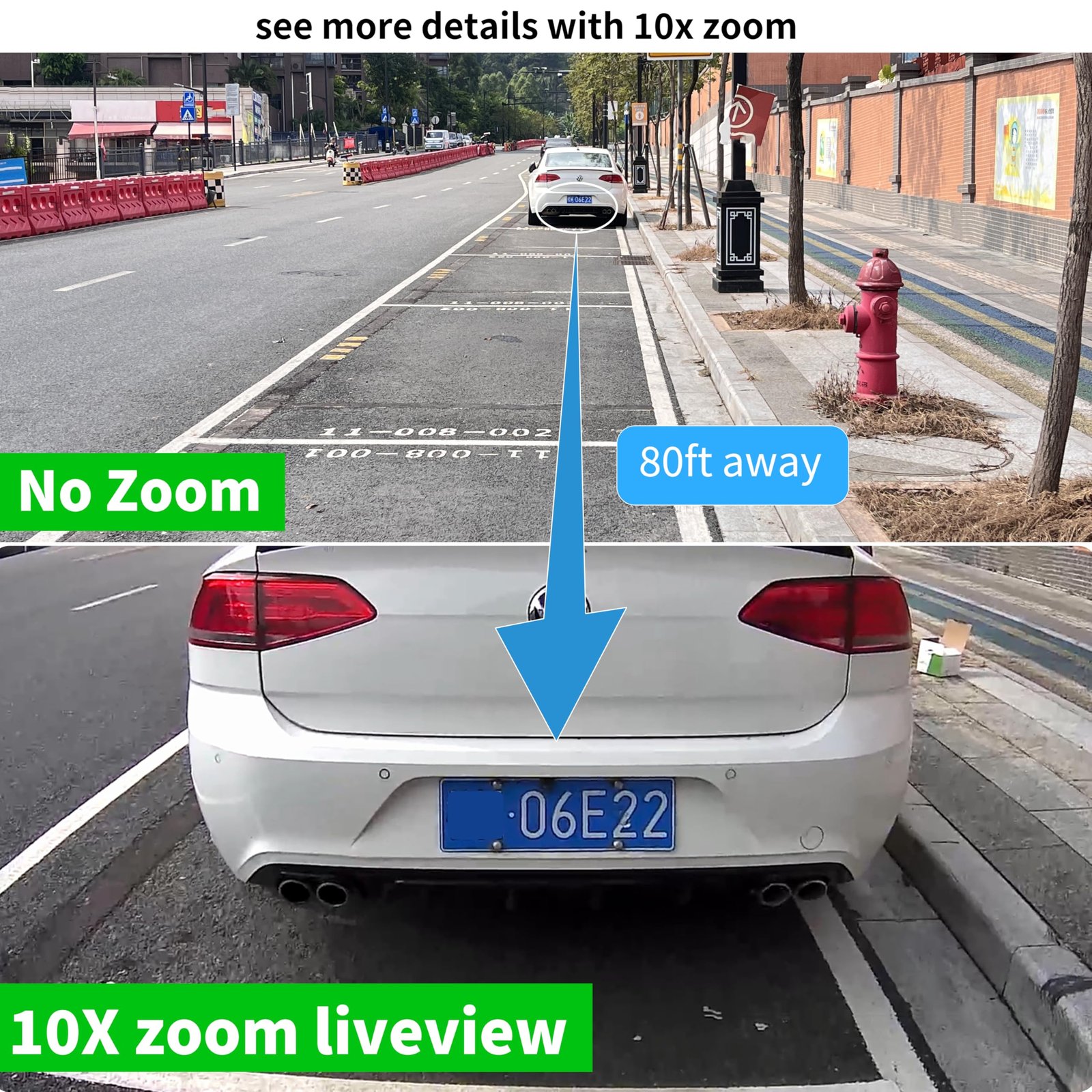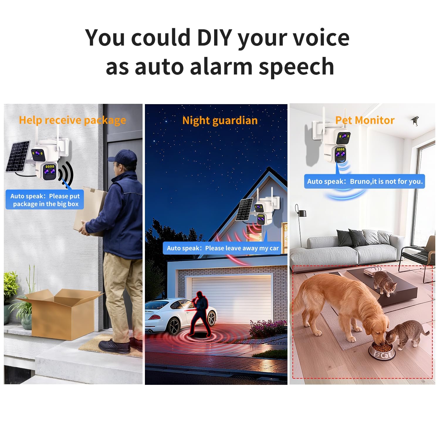【Triple Lens Dual Views and 10X Hybrid Zoom】This solar security cameras outdoor featured with three lens dual view. The panorama camera has a wide-angle feld of view, you could view every corner of your front door,back yard,shop, garage. And the PTZ camera can be rotated to pan 355° and tilt 90° . The security cameras wireless outdoor is equipped with 10X Hybrid Zoom, so you can see the details more clearly 65ft far away.