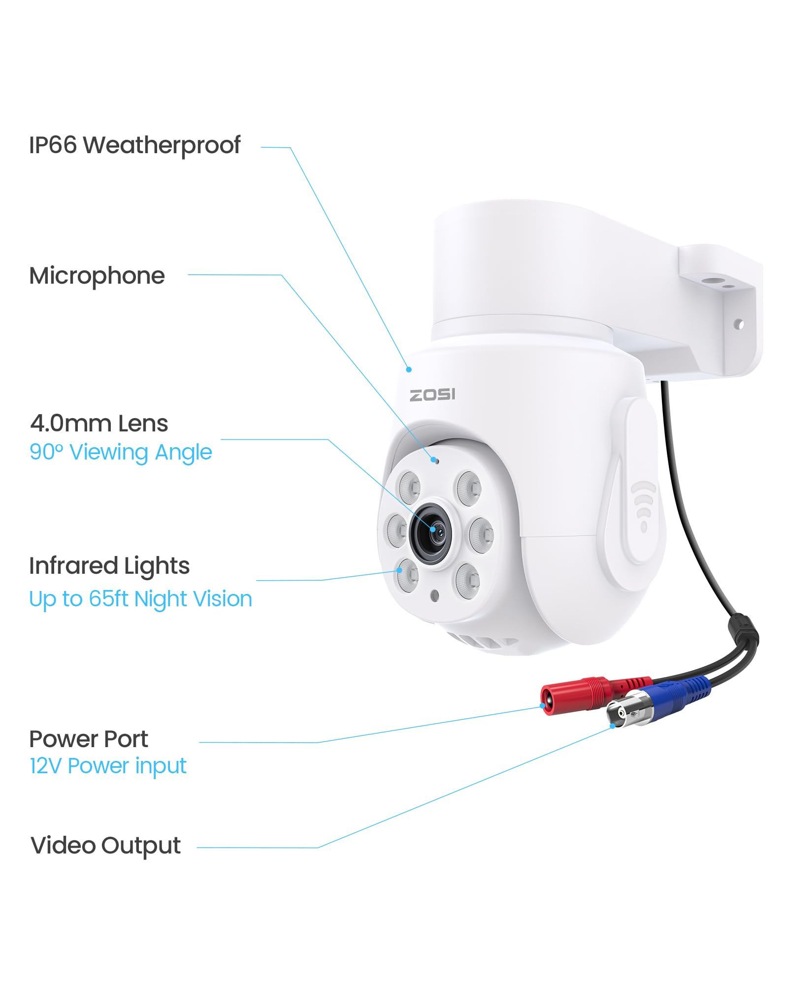 ZOSI 2 Pack 360°View Pan Tilt 1080P Wired Analog HD TVI Security Camera Outdoor Indoor,65ft Night Vision,One-Way Audio,Only Compatible with Same Brand 1080P,5MP and 4K CCTV DVR Systems