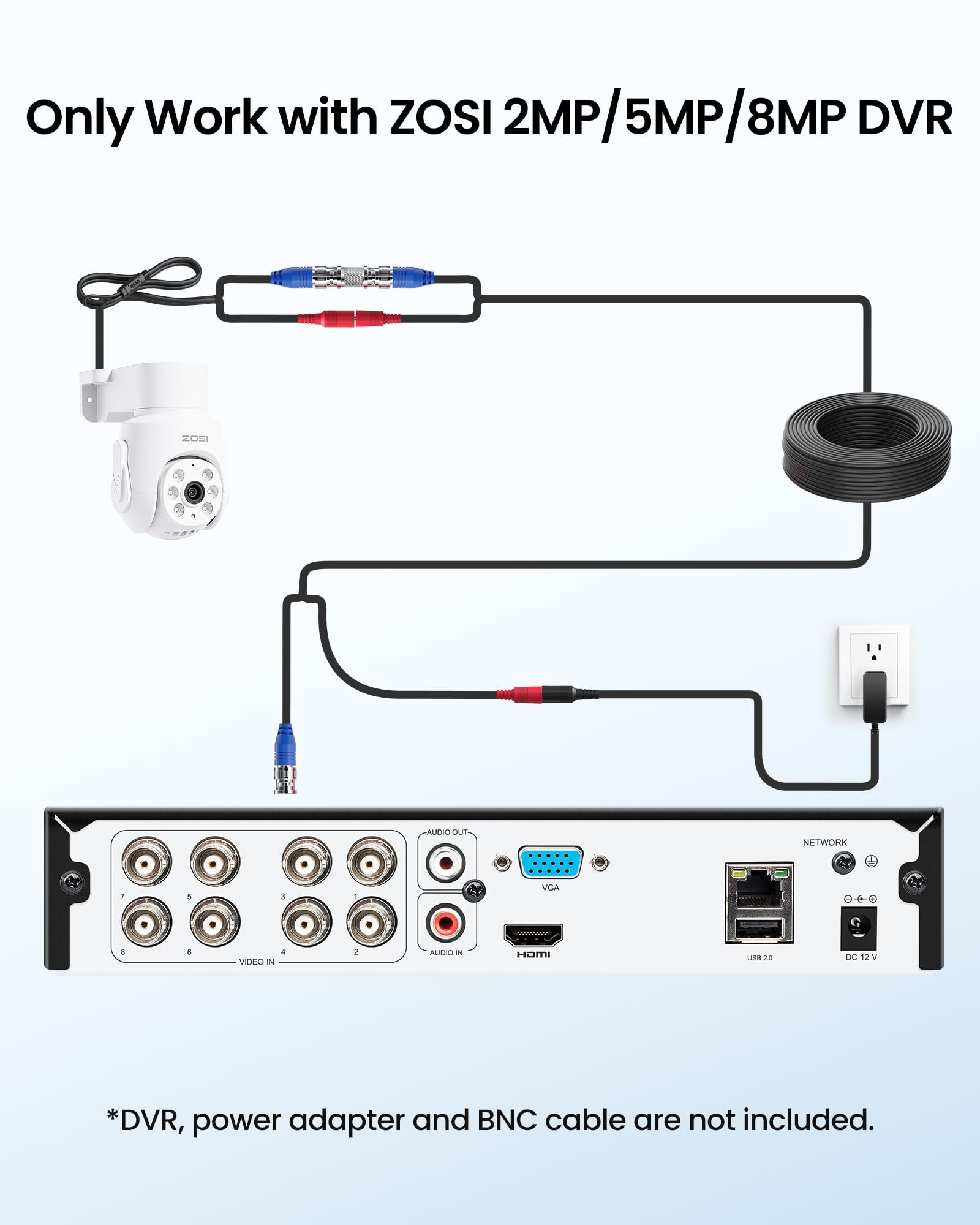 【Compatible with ZOSI DVR Only】 This 2MP add-on camera is dedicated for use with compatible ZOSI wired DVRs (2MP/5MP/4K models). It is not standalone and requires a direct connection to a DVR. Please ensure your DVR’s firmware is version 1.8.0 or higher before purchase.