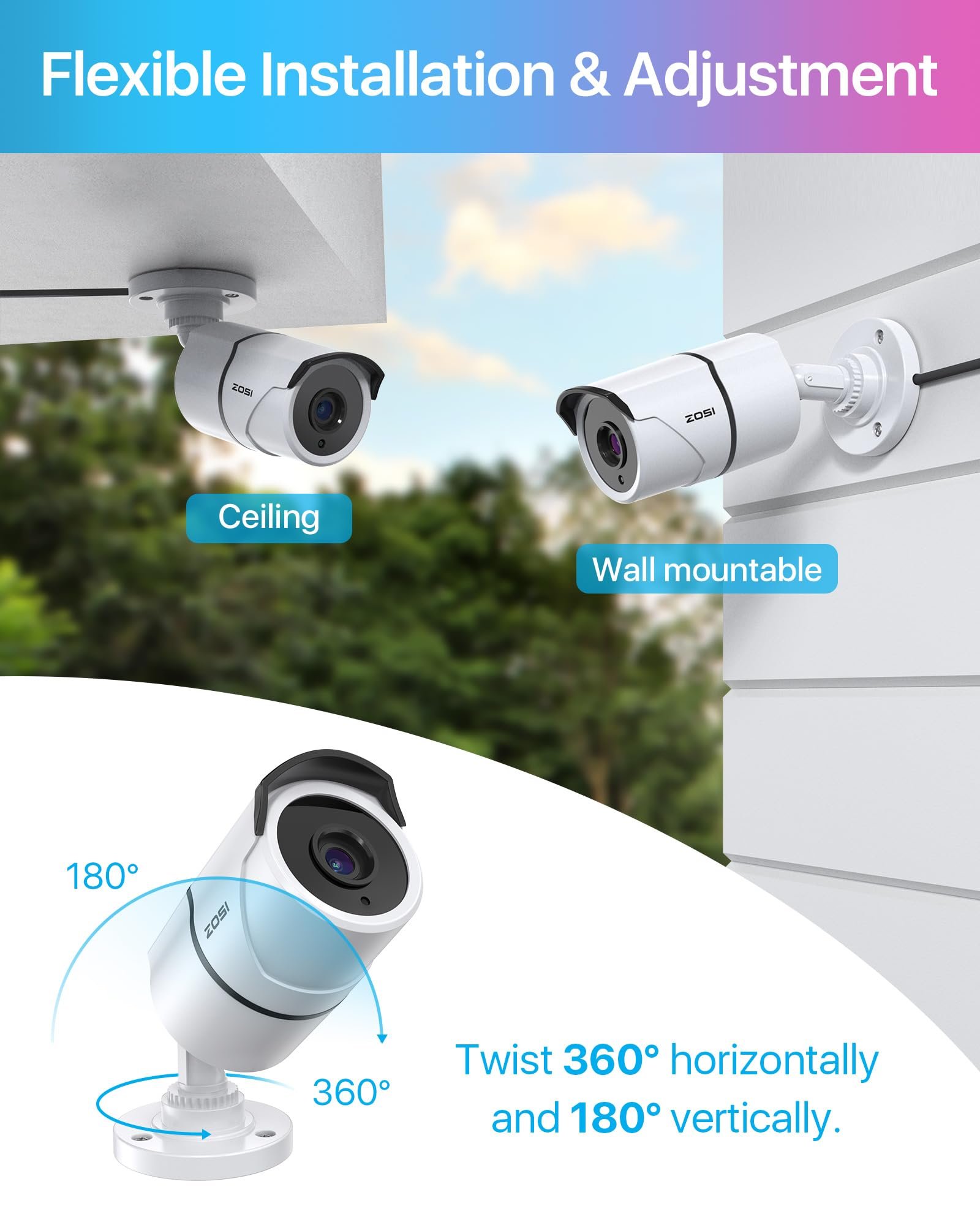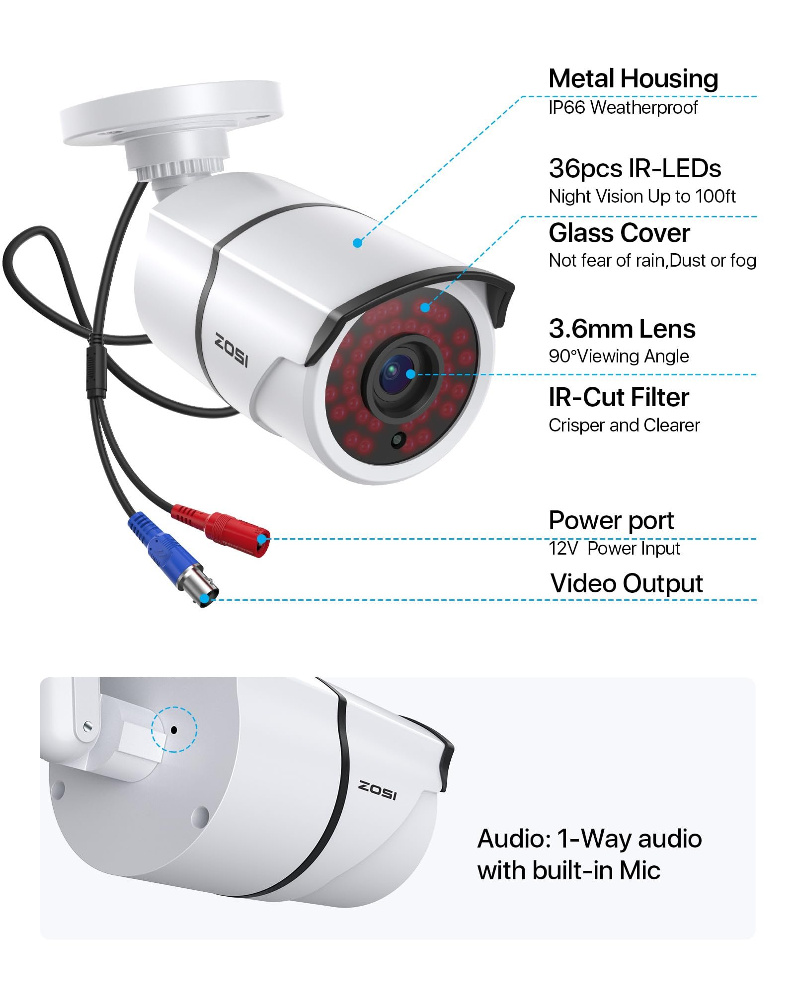 ZOSI 4PACK 1920TVL 1080P HD TVI Security Cameras 120ft Night Vision CCTV Cameras Home Security Day/Night Waterproof Camera for 720P,1080P,5MP,4K HD-TVI Analog DVR Systems