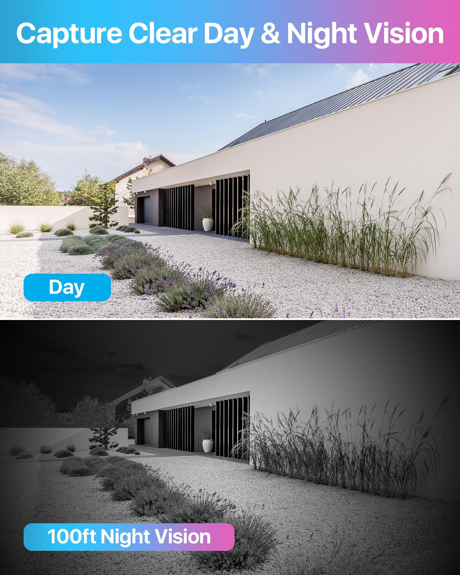 【120ft Night Vision】 get a sharp and crisp image day or night with the camera’s automatic IR-CUT filter Up to 120ft night vision in total darkness and 160ft Night vision in ambient light.More than 3.0Lux the night vision is color.